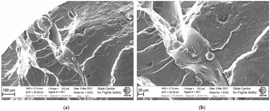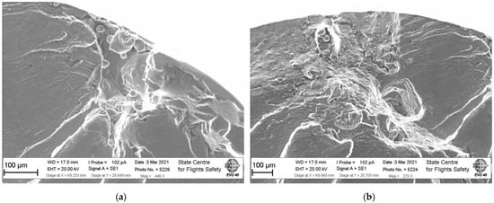 Such complex stress state also can produce the local compressive stress acting together with shear crack opening. Such combination of loading parameters can lead to spherical particle formation []. Such spherical particles were also observed at different location on the fracture surface of the investigated hot-rolled aluminum alloy.