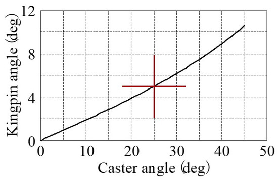 - In order to set d = 0 when standing upright, the kingpin angle (ψ) = 5 deg can be obtained from ξ = 25 deg.