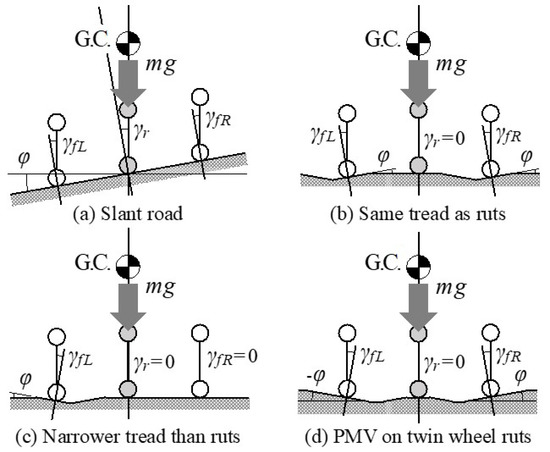 - Kageyama, I.; Makita, M.; Kuriyagawa, Y. Fundamental Study on Directional Control of PMV Using Large Camber Angle Control. Trans. JSAE 2015, 46, 919–924. [Google Scholar]