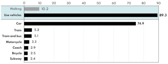 ISTAT data was studied to better understand how persons with limited mobility travel in cities on a daily basis (Figure 9) []. Every day, 300,000 disabled persons use private automobiles, either as drivers or passengers, to commute to work, while just 7.4 percent use public transportation.