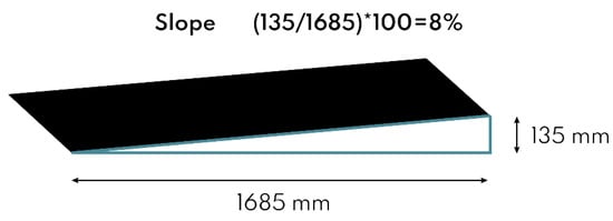 In order to comply with the regulations on the maximum slope of wheelchair ramps (law 13/89 and decree 236/89), the height and length of the ramp (Figure 23) to be inserted into the vehicle was calculated to achieve an 8 % slope (maximum limit not to be exceeded).