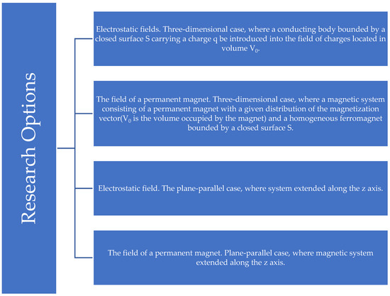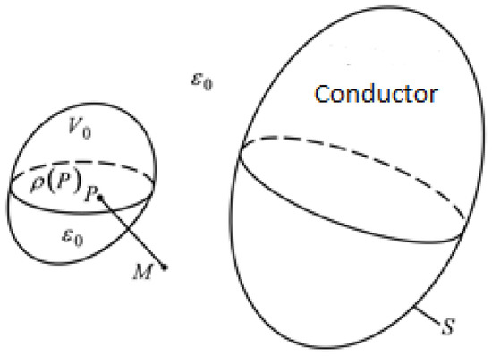 Electrostatic fields. Three-dimensional case. Let a conducting body bounded by a closed surface S carrying a charge q be introduced into the field of charges located in volume V0 (Figure 3) [24,25,26].
