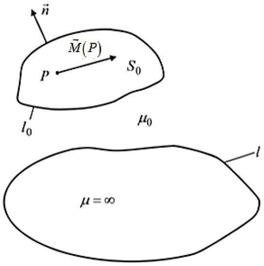 Materials with a high magnetic permeability exist; for example, permalloys belong to them. Pure iron also has a fairly high magnetic permeability. The infinite magnetic permeability of a material is, of course, a mathematical abstraction. However, in the absence of the phenomenon of magnetic saturation in a ferromagnet under certain conditions of the problem, if the magnetic permeability of the material of this ferromagnet is sufficiently large and is, for example, 1000 µ0 or higher, then the field perturbed by such a material will practically not differ in any way from the field perturbed by a ferromagnet with an infinite magnetic permeability [16,17,18,19].