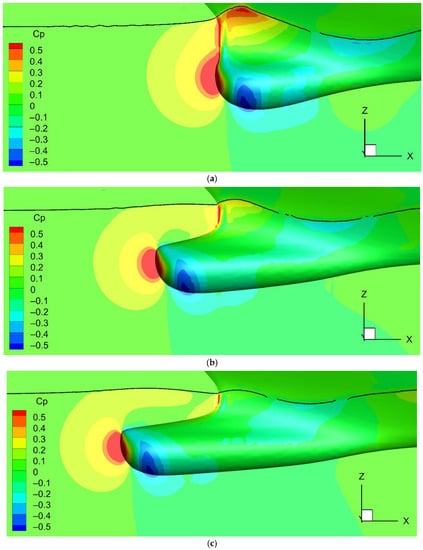 4.5. Pressure Distribution around Ship’s Bow