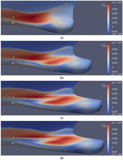 4.6. Distribution of Wall Shear Stress on Ship’s Bow