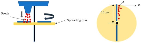 The distribution of seeds via the spreading disk is indicated in Figure 12. The velocity of individual seed A can be expressed using Equation (1).