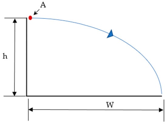 Seed A would travel a distance of W, and V is the velocity due to the impact of the rotating blade fixed to the disk. The horizontal distance or swath width W (m) are calculated using Equation (2), where h is the height of the spreading disk (m) from the ground and g is gravity (ms−2).
