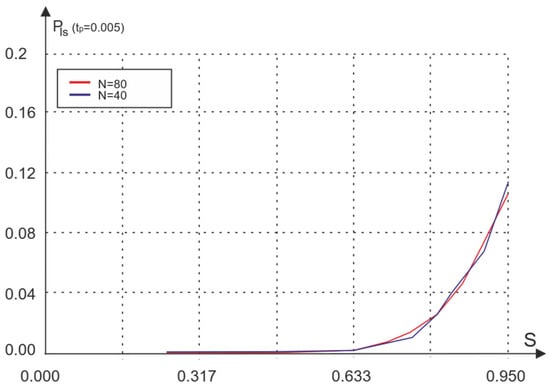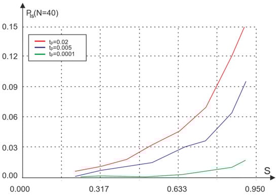 Dependence of the loss probability Pls on traffic S depending on the signal propagation time tp.