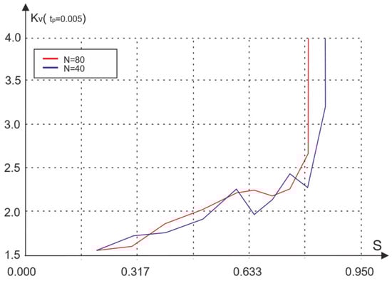 The above graphs illustrate the non-monotonic dependence of the coefficient of variation on the amount of traffic, and for a relatively small number of nodes (N = 40), this property is more pronounced than in the case of a large number of nodes (N = 80). Such a change in the coefficient of variation indicates an unstable mode of network operation, turning into a blocking mode [].