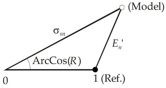 Equation (22) and the law of cosines are the basis for the graphical representation of the degree of closeness between a model and the reference data set, using dimensionless variables (Figure 2).