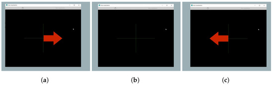 Arrows’ sequence during the training phase. (a) Right arrow; (b) Fixation cross; (c) Left arrow.