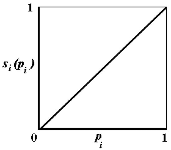 In view of this, an urgent task is such a modification of criterion (1), which allows for the elimination of the above disadvantages whilst retaining its structure, i.e., multiplicative convolution. One of the possible solutions is to use correspondence functions instead of the partial criterion , which would reflect the significance of the achieved value of the partial criterion. In this case, by the correspondence function, we mean a real one-place function, (one-place function) , which satisfies the following conditions: the function must: