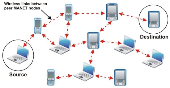 - Corson, S.; Macker, J.; Network Working Group. Request for Comments: RFC 2501. Mobile Ad Hoc Networking (MANET): Routing Protocol Performance Issues and Evaluation Considerations 1999. Available online: https://www.rfc-editor.org/info/rfc2501 (accessed on 7 June 2023).
