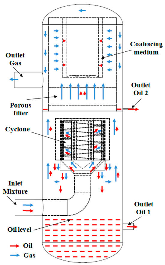 Oil and gas industry equipment called two-phase oil–gas separators are used to separate oil and gas from a mixed stream of fluids [10]. They are often utilized in upstream activities where extracted fluids comprise a combination of gas and oil, such as oil-producing fields or gas processing facilities [11].