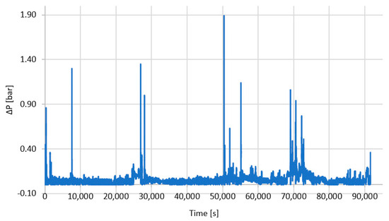 During this investigation, some observations were made regarding the pressure drop across the system at specific operating points (Figure 9). Upon careful analysis of the recorded data, it was discovered that during the compressor shutdown sequence, when the manual back pressure valve opens to release pressure from the system, the pressure within the separator vessel drops rapidly to zero within a few seconds. This sudden pressure drop results in an increasing gas velocity through the oil separator, leading to a flow rate higher than originally designed. Consequently, this phenomenon sheds light on the impact of transient conditions on the separator’s performance, emphasizing the significance of considering such operational scenarios to ensure optimal system functionality.