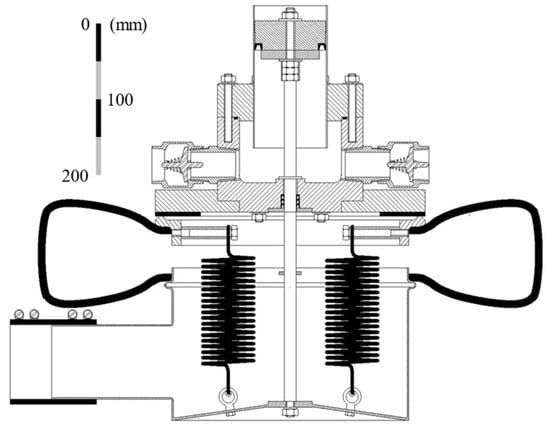 To access the most accurate geometry possible, contact was made with the Bunyip pump’s inventor [8,16,20] to receive a scalable technical drawing of their best-selling PA-13 model. This has been used in conjunction with available Bunyip content, including the operational calculation tool and charts, to describe the typical stroke length () and piston bore, 90 mm and 98 mm, respectively [8]. The procedure followed when analysing the domain is made using a developed 3D CAD render based on a technical illustration and annotations provided in parallel, shown in Figure 6 and Figure 7.