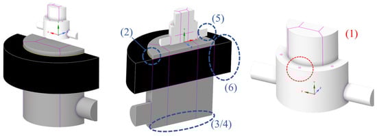 The illustration introduces the decisions made to translate the real-world system into a functional modelling form, considering the reduction in complexity, cell count, and computational requirements. The domain shared in Figure 7 illustrates shared faces that connect adjacent zones, illustrated in pink, enabling separate volumes to facilitate the structured meshing strategy to be discussed.