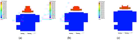 To investigate the model developed, a series of cases could be identified through an applied video analysis of physical testing (PT) models and installed Bunyip systems. The key operational parameter inputs are listed in Table 3. The delivery flow rate is set within 5 to 6 L/s to investigate varied head ratios’ influence on the performance of the Bunyip system and to support its model validation. The associated sources are provided in Appendix D. The following figures illustrate the operational principle through total pressure and velocity graphics to be discussed in tandem with focused post-processed depictions to aid the analysis.