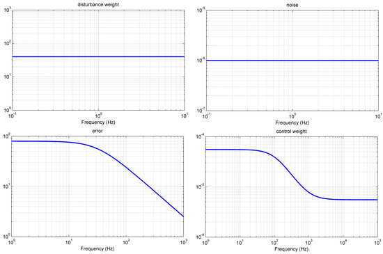 As can be seen, the state vector in this design has a size of 16 + 4 + 4 + 4 + 8 = 36. Modeling the controller K(s)’s size is additionally determined by this. In cases where any weight matrices are constant, this number will be reduced by the appropriate order [20,27,28].