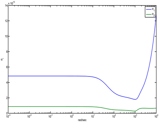 The maximum singular values in the frequency domain, with and without the lowered order control are shown in Figure 10. The outcomes without control are shown by the blue line, and the green line is the results with control. For the above simulations, we apply a quasi-Newton technique (BFGS) for a quicker approximation of a local minimizer. Neither the local bundle technique nor the gradient sampling method is employed if the MATLAB route does not include the quadratic programming tool “quadprog”. The gradients that Hifoo dynamically develops are utilized by each of these three optimization techniques. It is not attempted to locate the odd locations where gradients do not exist. The gradient discontinuities in unexpected locations do not cause the approaches to fail. A place where a convex combination of gradients at neighboring points has a small norm is sought in the last phases of the bundle and gradient sampling search parameter space. During the BFGS stage, an extremely ill-conditioned Hessian approximation matrix is generated. The local bundle technique or the gradient sampling method is not employed if the MATLAB route does not include the quadratic programming tool “quadprog”. The gradients that Hifoo dynamically develops are utilized by each of these three optimization techniques. It is not attempted to locate the odd locations where gradients do not exist. The gradient discontinuities in unexpected locations do not cause the approaches to fail. A place where a convex combination of gradients at neighboring points has a small norm is sought in the last phases of the bundle and gradient sampling search parameter space. During the BFGS stage, an extremely ill-conditioned Hessian approximation matrix is generated.