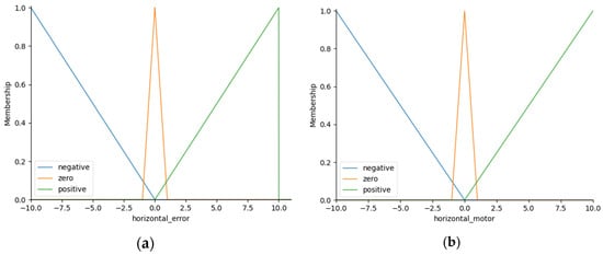 Fuzzy membership functions charts for (a) horizontal error and (b) horizontal motors.