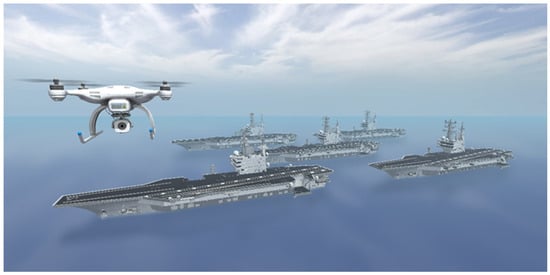 In our simulation, the drone was initially positioned on an aircraft carrier using the aforementioned methods. It was then commanded to fly toward a specific position and altitude. Next, the yaw was randomly adjusted to ensure that the aircraft carrier appeared in the field of view (FOV).
