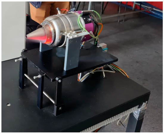 The experiments were performed on a Jet CAT P80® turbo-engine [43], as shown in Figure 6.