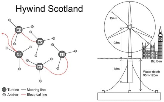The first installed floating wind project in the world (Hywind Scotland). Figure processed by the authors on the basis of information presented in [].