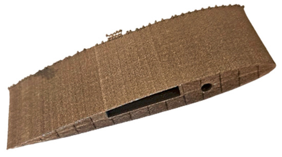 Figure 1. Model 1—PLA 3D-printed airfoil. - Model 2 (Figure 2)—Inconel 3D metal printing. The design entails a singular block intended for producing perforations through direct laser drilling. However, the surface roughness is notably high, necessitating additional post-processing steps like sanding. To address this, the process requires repetition with extra material beyond the nominal dimensions. Given the complexity of these operations, the method has been temporarily suspended.