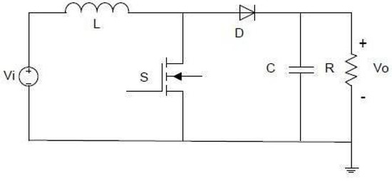 Considering the specific requirements and operational conditions of the photovoltaic system, the conventional boost converter was chosen to prioritize simplicity and ease of implementation, given the lower power range involved in this work. Figure 1 illustrates a basic boost converter or voltage lifter. It operates through a two-stage process: (1) the conduction of the transistor (S), and (2) the conduction of the diode (D).
