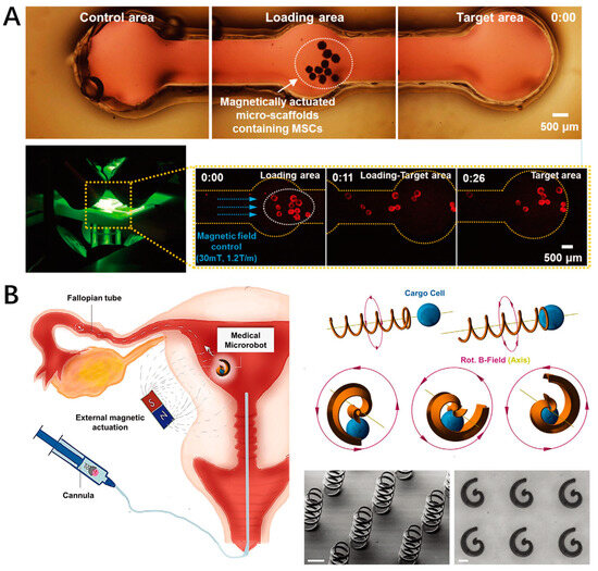 - Go, G.; Han, J.; Zhen, J.; Zheng, S.; Yoo, A.; Jeon, M.J.; Park, J.O.; Park, S. A Magnetically Actuated Microscaffold Containing Mesenchymal Stem Cells for Articular Cartilage Repair. Adv. Healthc. Mater. 2017, 6, 1601378. [Google Scholar] [CrossRef]