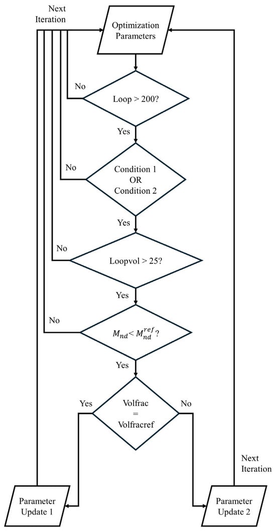 45]. This algorithm is used for updating the design variables according to the objective and restrictions. Additionally, the linear density filter [
