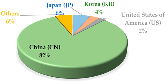 As shown in Figure 8, China led with an overwhelming majority, accounting for more than four-fifths of the total patents at 730, indicating a significant focus on advancing septic tank technologies within the country. Japan, South Korea, and the U.S. followed with 54, 30, and 21 patents, respectively, highlighting their contributions to the field. Other countries collectively filed 54 patents, with Brazil, Russia, Thailand, and Taiwan each filing more than five patents over the analysed period, reflecting a broader, yet less concentrated, global interest in septic tank technology improvements.