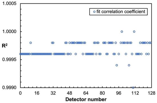 Correlation coefficient R2 for the energy calibration fit versus the detector number.