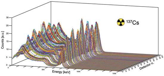 The 128 calibrated spectra obtained with the 137Cs source in the arrangement in Figure 7.