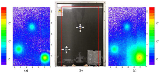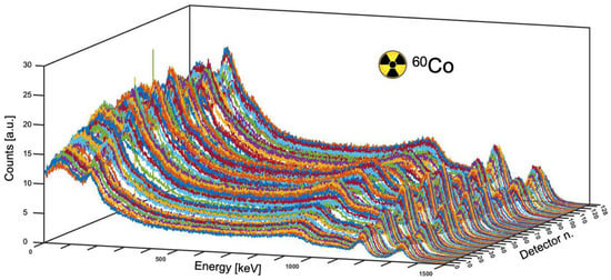 Similar systems have been proposed recently, mainly focused on high-resolution spectroscopy and thus relying on germanium detectors [,]. However, despite featuring superior radioisotope identification, such a system has poor spacial resolution because of the detector size, which has to be large (1″–2″). Moreover, the cost of a germanium detector and the related electronics is rather high; therefore, one makes use of a single detector moved on top of the objects under examination, and this makes this kind of system rather expensive and slow []. The much longer scan duration conflicts with the requirement of rapid results, essential when in need of (re)conditioning a large number of radioactive waste packages.