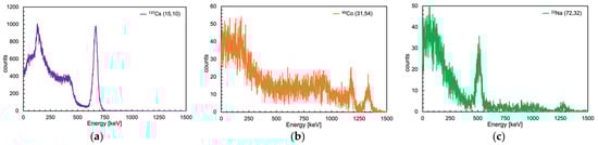 Spectra from three dedicated one-minute data acquisitions on the three detected hot-spots. (a) 137Cs. (b) 60Co. (c) 22Na.