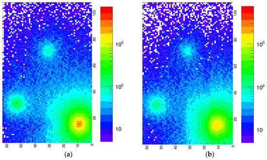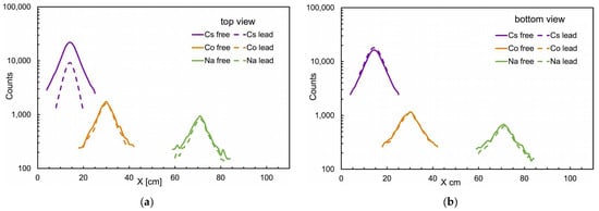Result of the 1.5 min gamma scan with the lead plate on the 137Cs source. (a) Top view. (b) Bottom view.
