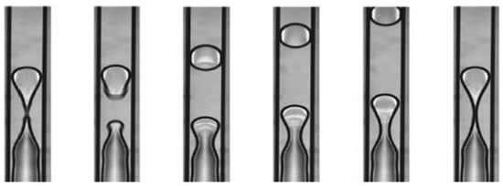 - Liang, S.B.; Ma, H.B. Oscillating Motions of Slug Flow in Capillary Tubes. Int. Commun. Heat Mass Transf. 2004, 31, 365–375. [Google Scholar] [CrossRef]