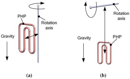 Demonstrations of rotating PHPs. (a) Axial rotations and (b) radial rotations [].