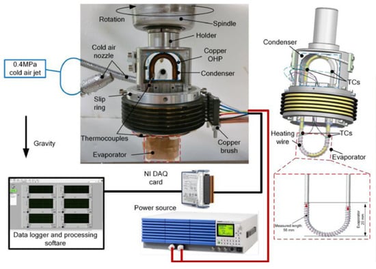 - On-ai, K.; Kammuang-lue, N.; Terdtoon, P.; Sakulchangsatjatai, P. Implied Physical Phenomena of Rotating Closed-Loop Pulsating Heat Pipe from Working Fluid Temperature. Appl. Therm. Eng. 2019, 148, 1303–1309. [Google Scholar] [CrossRef]