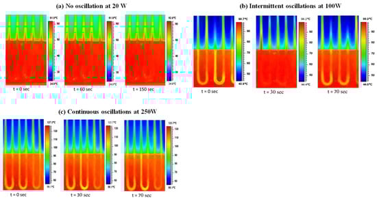 View of the FPPHPs’ flow pattern (left) and associated temperature (right) under microgravity conditions with water. Power input: 200 watts [].