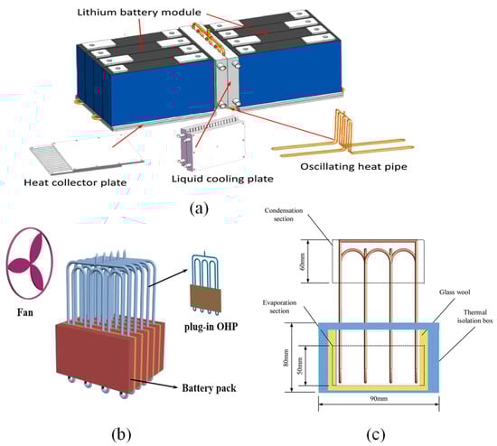 - Wang, Q.; Rao, Z.; Huo, Y.; Wang, S. Thermal Performance of Phase Change Material/Oscillating Heat Pipe-Based Battery Thermal Management System. Int. J. Therm. Sci. 2016, 102, 9–16. [Google Scholar] [CrossRef]