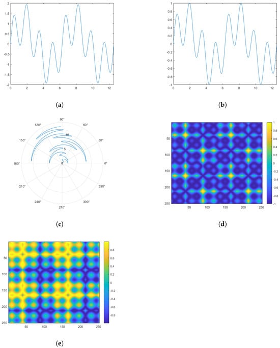 Figure 2 illustrates the conversion of an example time series into GASF and GADF. As described above, the time series is first normalized. Next, the normalized signal is converted into polar coordinates. Finally, GASF and GADF can be obtained from the polar coordinates using Equations (6) and (8), respectively.