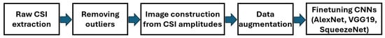 The general workflow of the Wi-Fi CSI-based HAR method proposed by Jawad and Alaziz [].