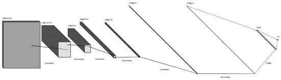 In [], Shahverdi et al. also utilized CSI data converted into RGB images. Prior to the conversion to RGB images, principal component analysis (PCA) [], normalization, and linear discriminant analysis (LDA) [] were applied to the raw CSI to reduce dimensionality and decrease noise. The authors’ main contribution was the application of edge detection techniques on the RGB images as a preproceesing phase to improve the accuracy of activity recognition. The study utilized a CNN as a classifier, whose structure is depicted in Figure 7.