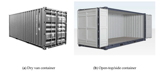 - ISO/TC 104. ISO 668:1995; Series 1 Freight Containers-Classification, Dimensions and Ratings. International Organization for Standardization: Geneva, Switzerland, 1995.