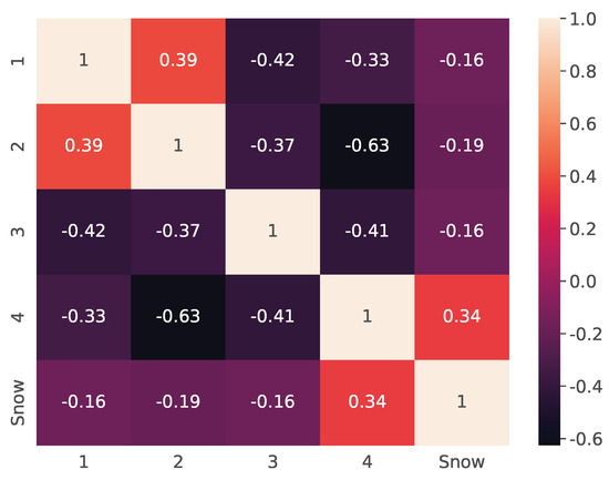 The runoff forecasting problem is multiparametric, which implies that there are many ways to improve the accuracy of forecasts. Several studies [9,10,11,12,13] highlight ways to enhance the quality of inflow forecasts by increasing the density of observational data on hydrometeorological and landscape factors of runoff formation. This can be achieved using Earth remote sensing (ERS) data; digital elevation models, as well as data from expeditionary and experimental work on the mathematical modeling of water balance elements in the catchment area. However, when singling out such a value as snow reserve, one may encounter a problem in the correctness of its assessment, according to previous works [14,15].