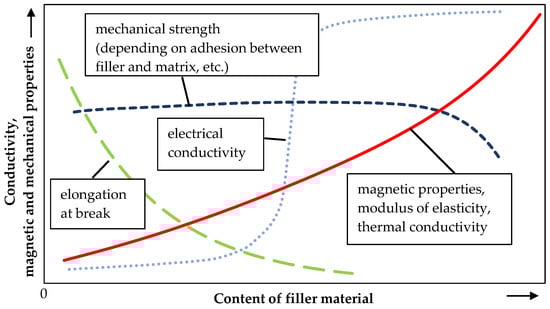 Relationship between properties of polymer composites and filler content (based on [42,43]).