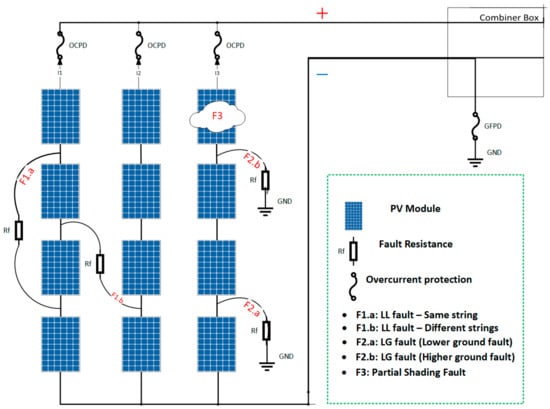 - Md Tofael, A.; Teresa, G. Fault Analysis in Solar Photovoltaic Arrays. In Proceedings of the 5th International Conference on Renewable Energy Research and Applications, Bermigham, UK, 6–9 November 2016; pp. 20–23. [Google Scholar]